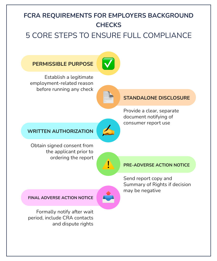 FCRA requirements for employers background checks come down to five core obligations every HR team must follow:
